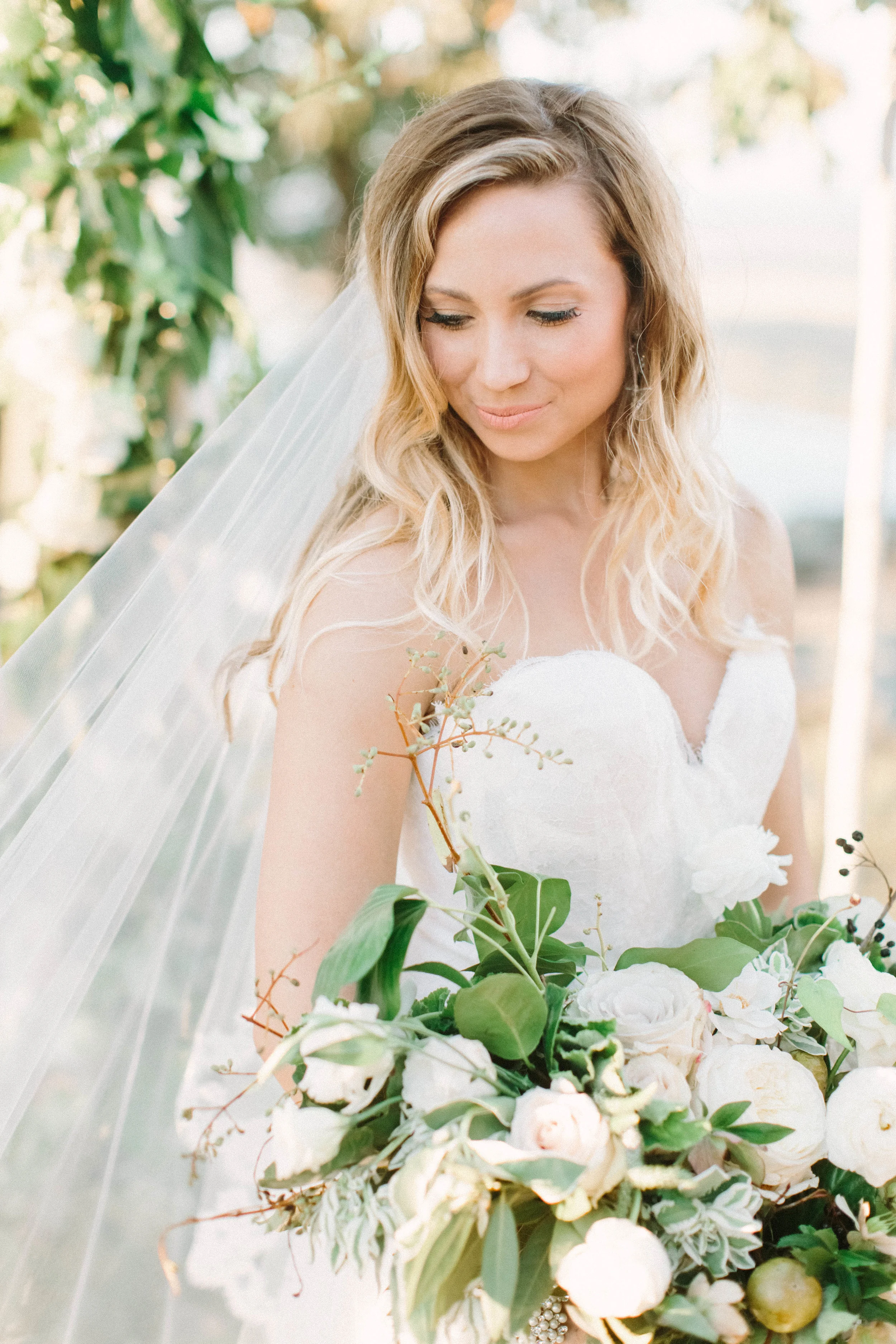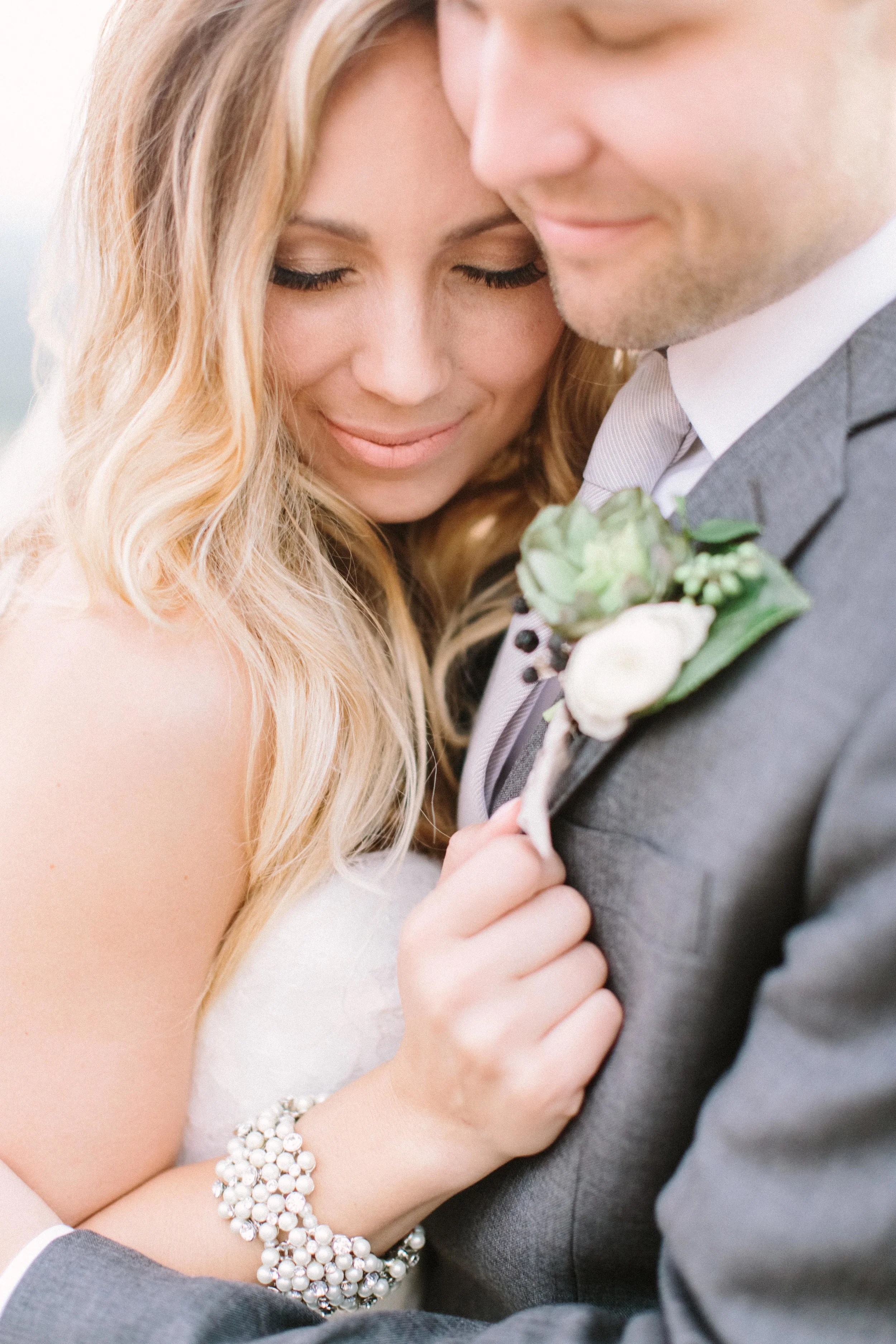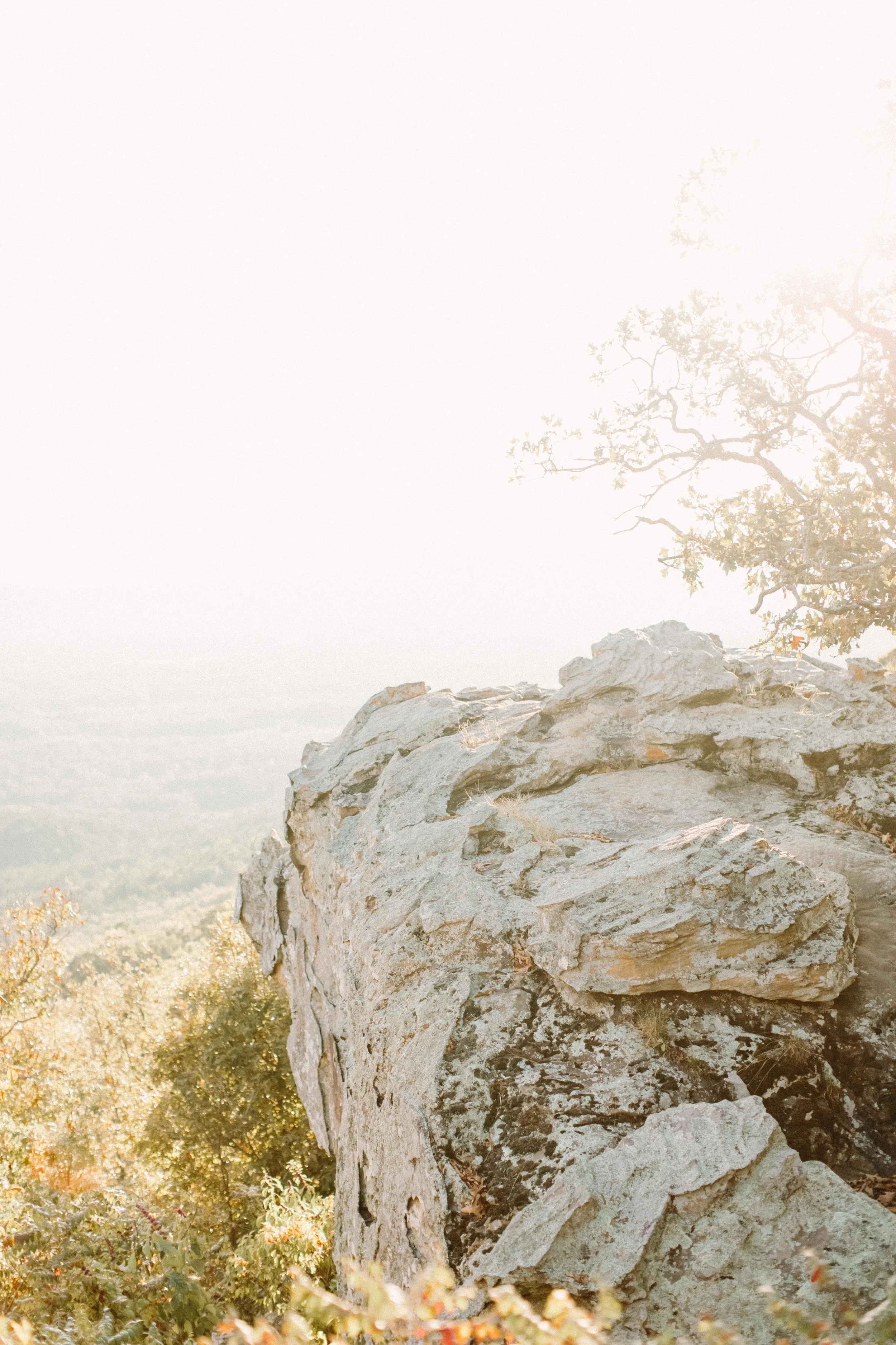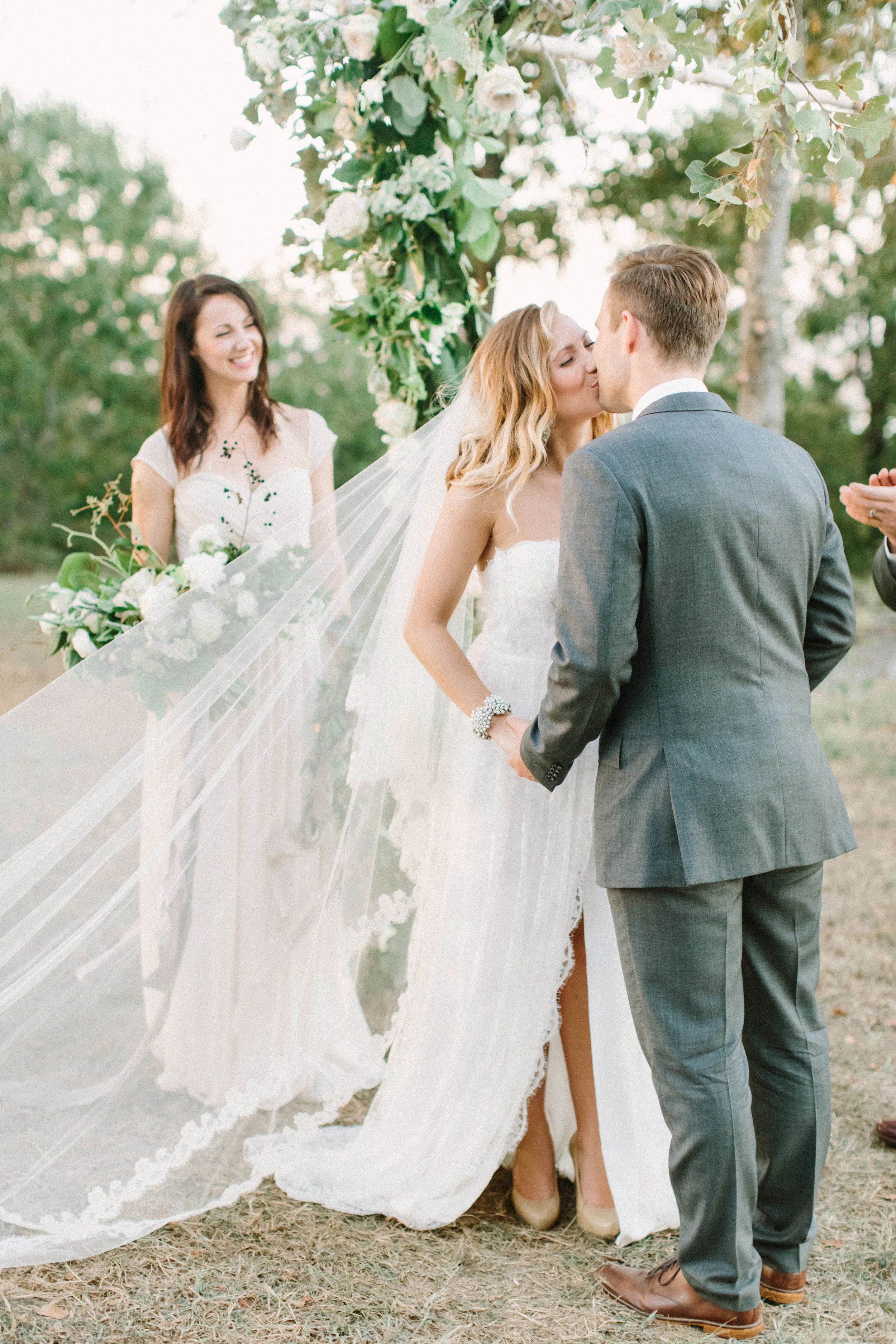 "When I received the inspiration board from Nancy I was thrilled because I love organic floral with a neutral palette. She asked me to do something a little different for the bridesmaid and I just love what we ended up with -- a simple wreath of greenery tied with gorgeous silk ribbon. It’s probably my favorite detail of this entire shoot. I also loved creating this chuppa on top of Petit Jean mountain. Can you imagine a more gorgeous place to be inspired?!”