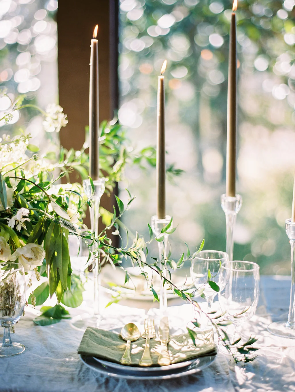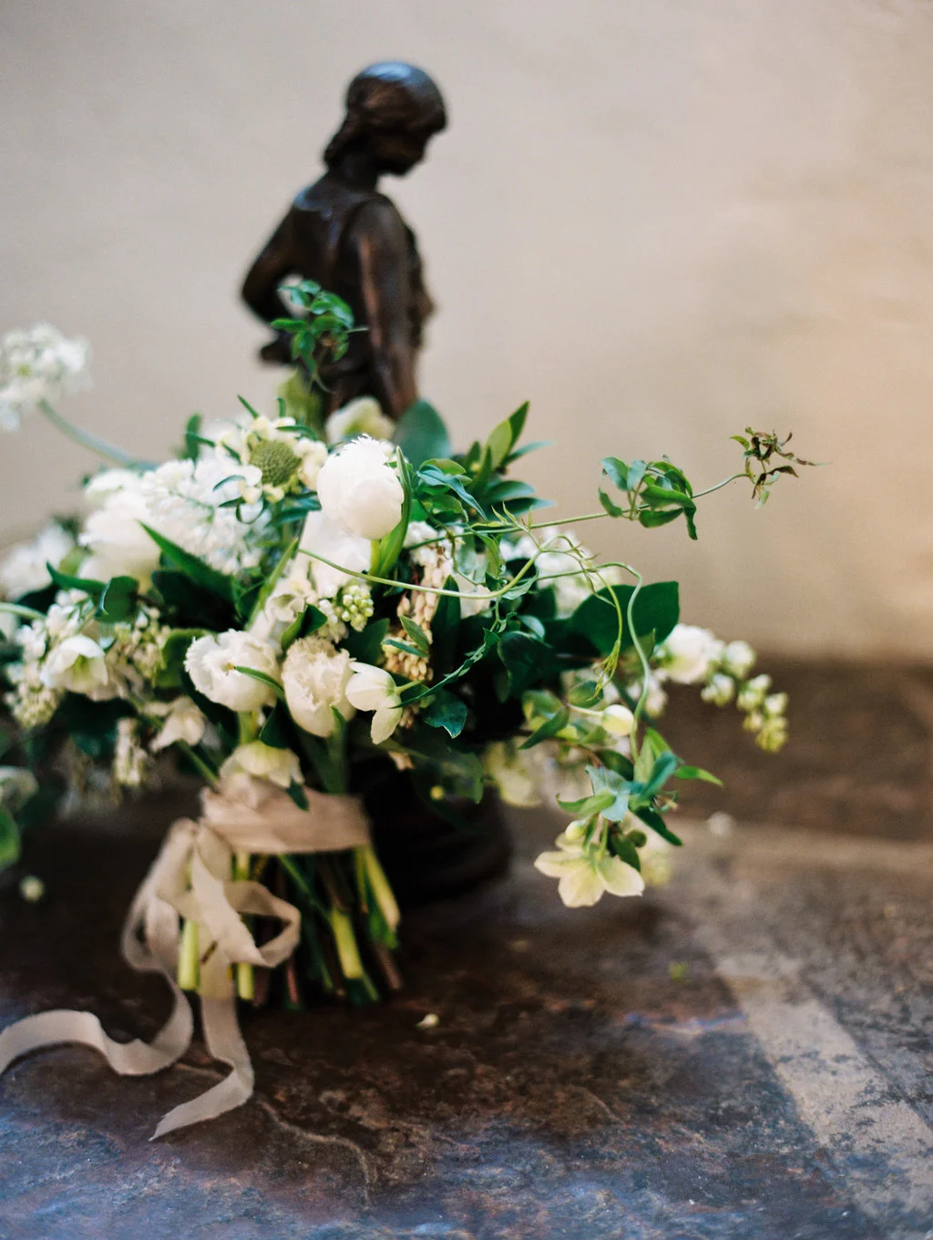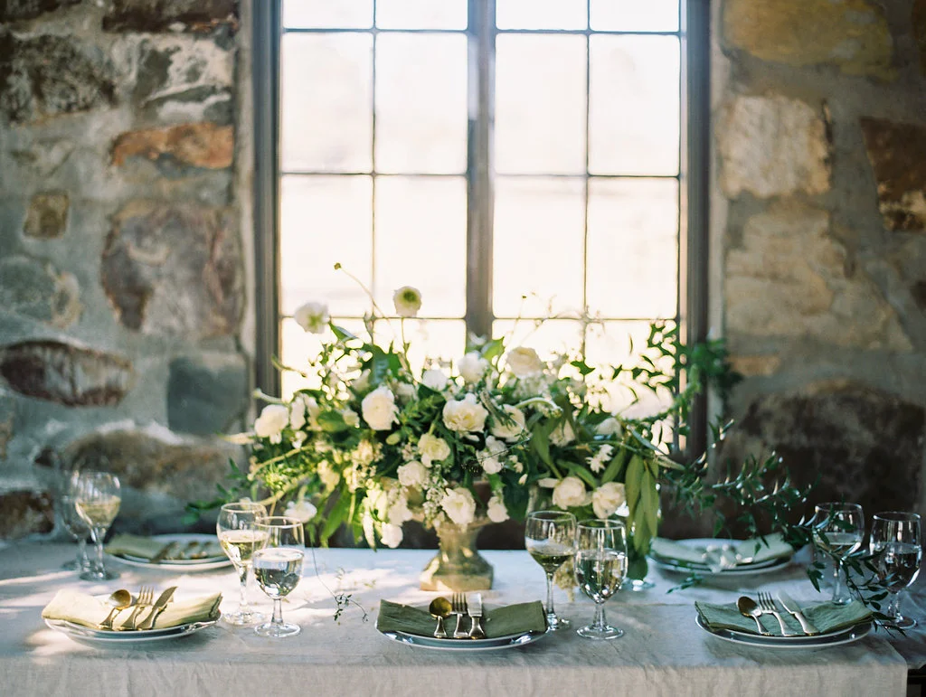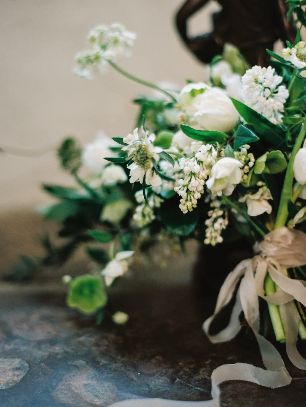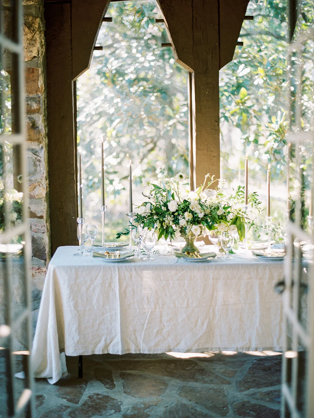 Nestled in the heart of Arkansas, we have the unique luxury of being surrounded by all of the beauty this state has to offer. The Castle on Stagecoach may only be half an hour’s drive from our studio door, but it feels like stepping into something magical across the ocean. When selecting the elements of this shoot, we were inspired by the old world European character of the castle and wanted to create a stark contrast between a style that is notorious for beautiful details – everything from its rough-hewn stone walls to ornate ironwork–with a minimalistic style that portrays an almost lack of detail, a forgotten simplicity. Unstructured arrangements of greenery and white maintained effortlessness while adding a contemporary element. The result was an ethereal and enchanting scene that allowed the location to speak for itself.